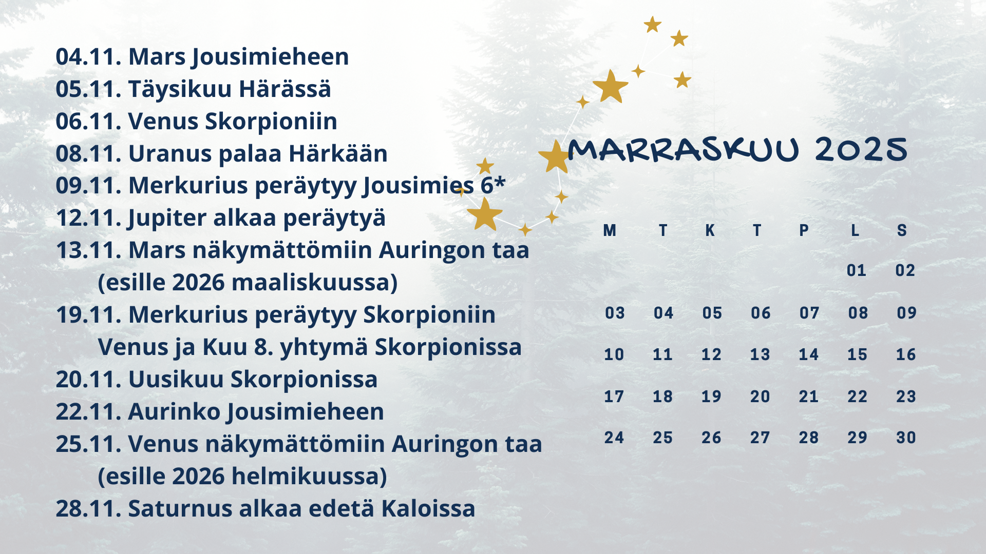 Merkurius peräytyy ja aloittaa uuden vaiheensa 20.11. Skorpionin merkissä.