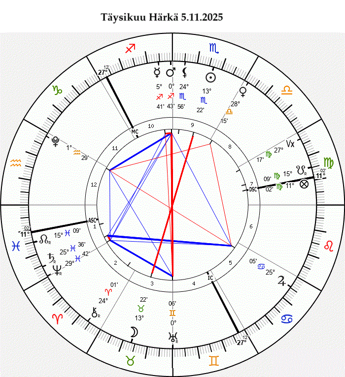 Täysikuuta hallitsee tällä kertaa Venus, joka on kotimerkissään Vaa´ assa ja saa haastavan kontaktin Jupiterilta Ravussa. Myös Pluto on lähellä 90 asteen kulmaa.